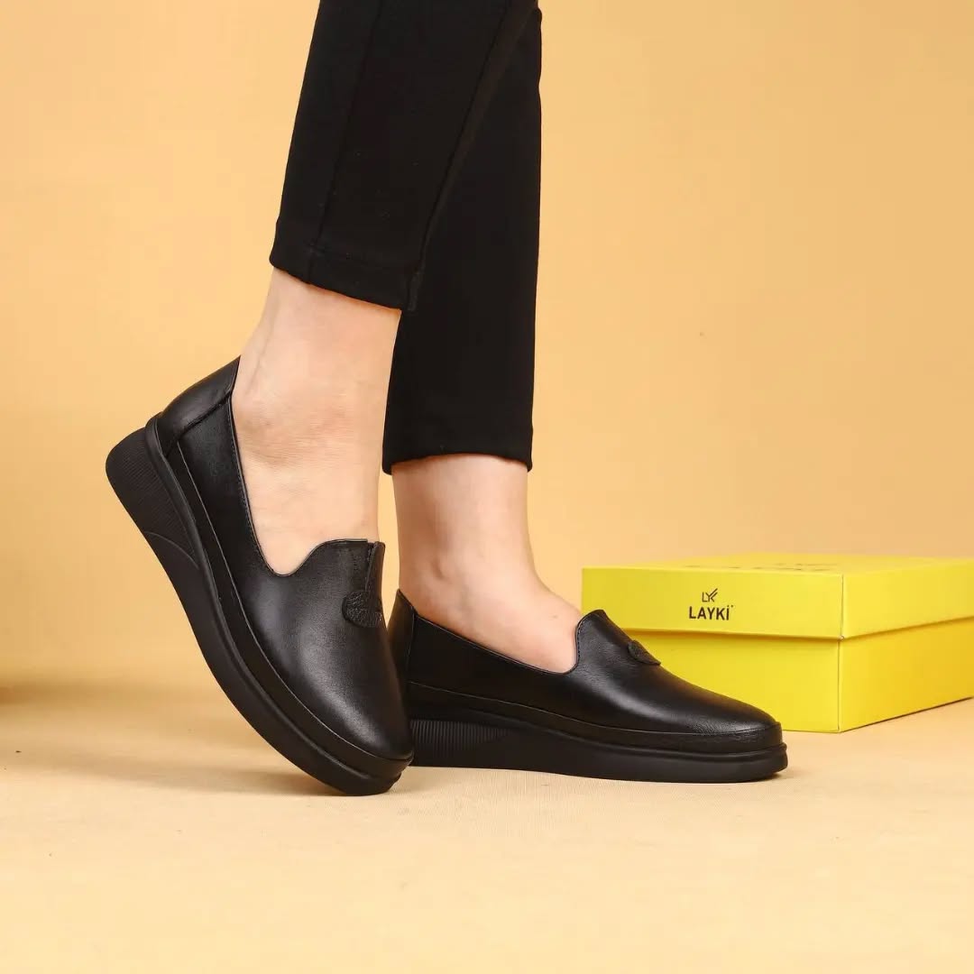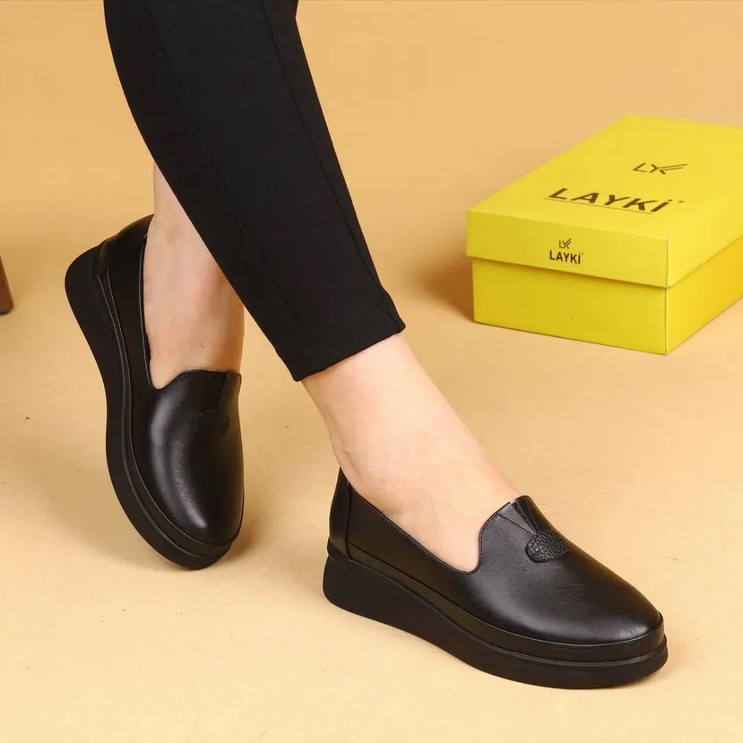 حذاء تركي للنساء أنيق جدا يناسب جميع إطلالات وهو حذاء رائع مصنوع من الجلد الأسود وهو ذو كعب